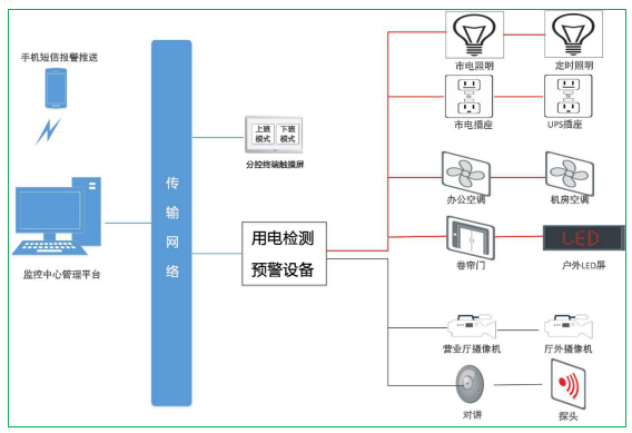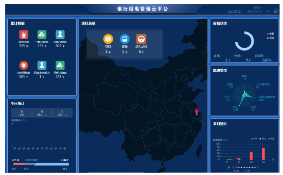 銀行用電安全云平臺(tái)通過(guò)采集設(shè)備的數(shù)據(jù),能夠?qū)ΜF(xiàn)場(chǎng)的電壓、電流、溫度、電弧等進(jìn)行實(shí)時(shí)監(jiān)測(cè)并進(jìn)行數(shù)據(jù)分析,并對(duì)被保護(hù)線路的過(guò)壓、過(guò)載、過(guò)流、過(guò)溫、欠壓、打火、缺相、設(shè)備不在線等情況進(jìn)行預(yù)警,系統(tǒng)在發(fā)現(xiàn)電氣火災(zāi)預(yù)警時(shí),信息可多種途徑及時(shí)通知相關(guān)單位處理,確保用電線路系統(tǒng)安全。