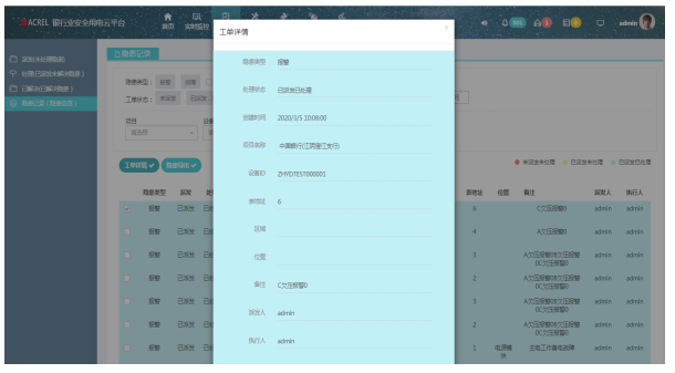 隱患界面 我們從報(bào)警查詢,分派,處理,查看過(guò)程。形成一個(gè)閉環(huán),方便客戶追蹤整個(gè)流程。隱患巡查提供多種方式查看未進(jìn)行處理的隱患。隱患派發(fā)針對(duì)未處理的隱患,對(duì)隱患派發(fā)到個(gè)人,設(shè)置處理完成節(jié)點(diǎn),及時(shí)通知人員進(jìn)行處理。隱患處理界面,收到任務(wù)的人員能對(duì)這個(gè)隱患進(jìn)行處理,包括寫(xiě)明原因和上傳現(xiàn)場(chǎng)圖片等。隱患記錄界面,能夠查看處于各個(gè)節(jié)點(diǎn)的隱患記錄,把握整個(gè)平臺(tái)的隱患概況。