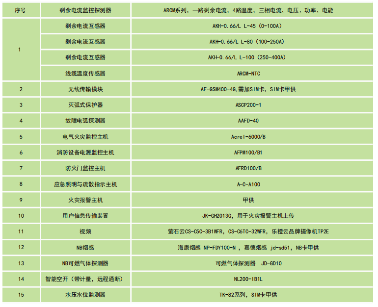 可接入電氣火災、故障電弧、電氣火災主機、滅弧式保護器探測和母排無線測溫探測等。