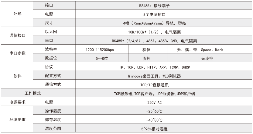 ● 2 路 10-100Mbits 自適應(yīng)以太網(wǎng)通信,實(shí)現(xiàn) 8 路服務(wù)器功能,支持 Web 網(wǎng)頁參數(shù)配置。