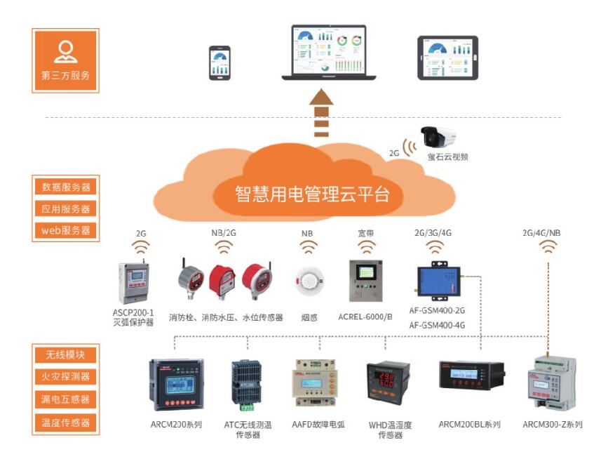 安科瑞指導(dǎo)用戶完成如電氣火災(zāi)探測器、剩余電流互感器、溫度傳感器、無線模塊等的安裝和調(diào)試,用戶將數(shù)據(jù)上傳至安科瑞智慧用電監(jiān)控預(yù)警平臺(tái),委托安科瑞管理,按規(guī)定/約定收取軟件基礎(chǔ)費(fèi)用和托管費(fèi)用。